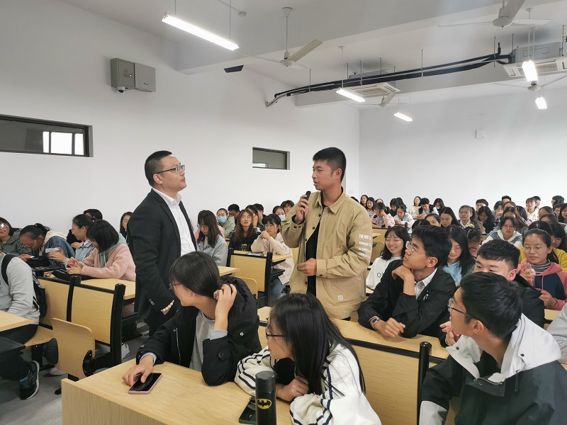 优秀校友分享会于10月21日在立德楼216教室举行。优秀校友、国贸011班陈祥应邀与2020级全体国贸新生面对面。