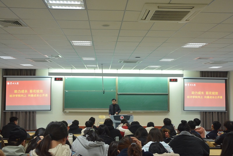 为践行资助育人宗旨,经济咪咕体育直播 于12月10日在立德楼x3阶教室开展“助力成长 苔花绽放”向上·向善成长公开课。校关工委副主任袁能老师担任主讲人,经济咪咕体育直播 参与家庭困难认定的百余名学生参加活动。