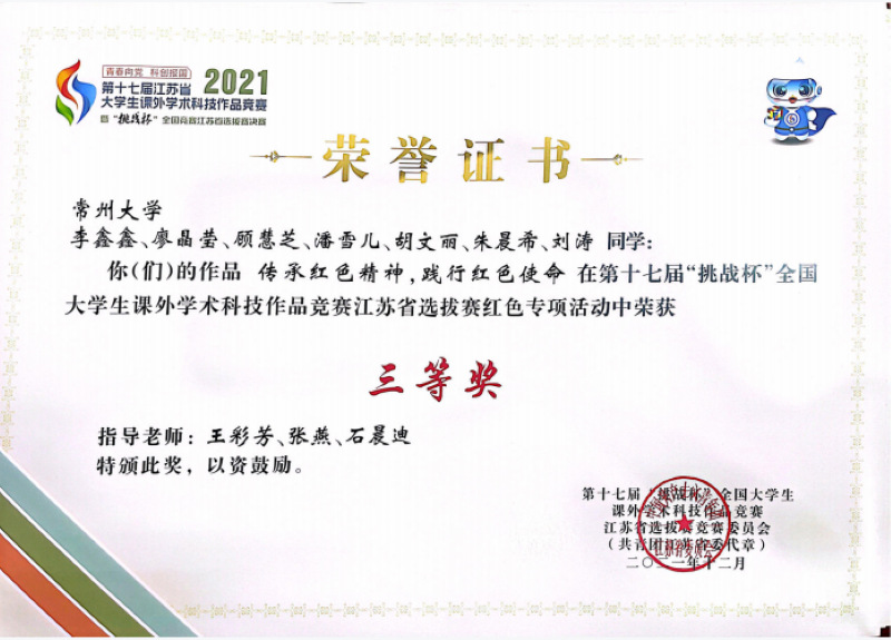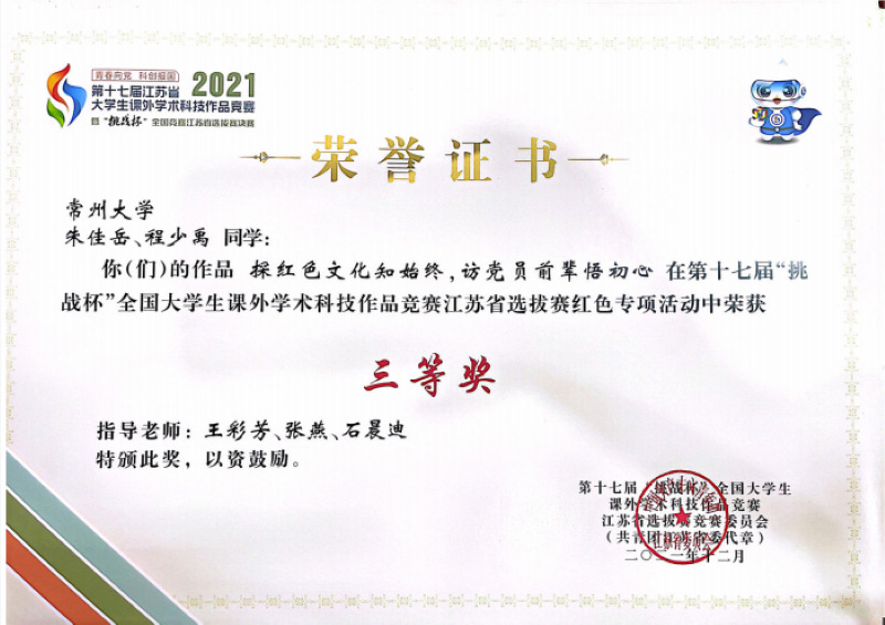 咪咕体育直播 在第十七届“挑战杯”全国大学生课外学术科技作品竞赛江苏省选拔赛红色专项活动中取得佳绩