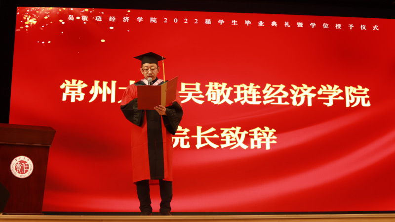 又是一年六月时,芳华绽放在常大。6月19日上午9时,咪咕体育直播 于常州大学西太湖校区立艺楼礼堂举行2022届学生毕业典礼暨学位授予仪式。咪咕体育直播 党委书记姜鸿,院长姜国刚,副院长张普,副院长任保全,党委副书记王彩芳,院长助理、金融学系主任曹启龙,国贸系主任管志杰,金融工程系主任姚惠泽,咪咕体育直播 学术委员会主席贾德奎,咪咕体育直播 工会副主席、英文授课教研室负责人杨帅,国贸系副主任王美昌,金融工程系副主任程安以及常州汇塑勤业进出口有限公司总经理陈祥,与2022届毕业生共同参加此次典礼。