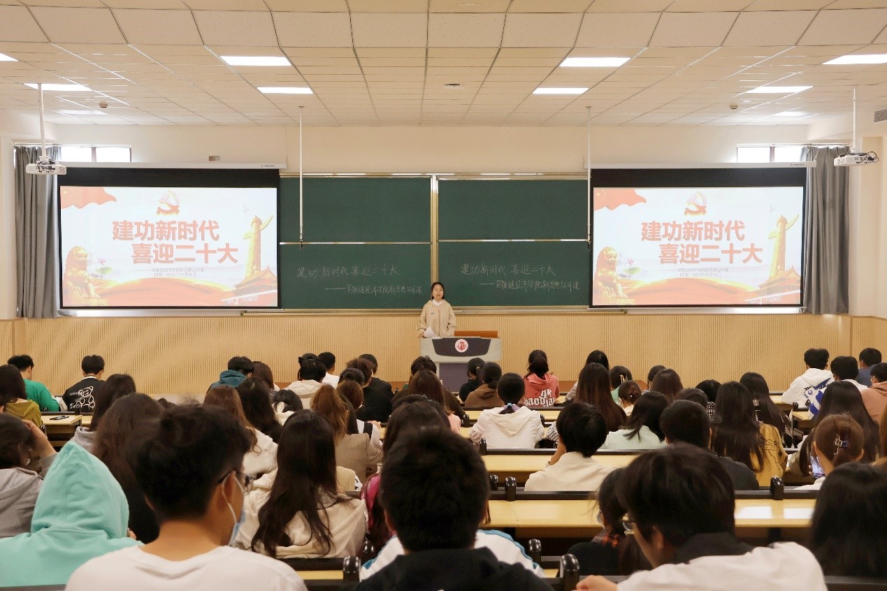 此次新思想公开课由二十大前瞻、“五史”回顾、青年立志说三个版块组成。在第一版块中,主讲人从二十大召开背景展开,强调新时代青年需加强对中国共产党全国代表大会及系列讲话精神的认识和学习。在第二版块中,主讲人带领全体学生回顾“五史”:党史、新中国史、改革开放史、社会主义发展史、中华民族发展史,要求广大青年学子全面把握新时代十年伟大变革的里程碑意义,感悟中华巨变。在第三个版块中,主讲人围绕新时代、新青年、新担当展开,向在座青年提出以志为先、以新为径、以苦为食的新要求,倡导青年勇担重任,立“请党放心,强国有我”之志,续百年华章。最后,主讲人通过问答小活动,带领在座学生巩固本课所学,同时号召学生要胸怀崇高理想,恪守学生本分,牢记服务宗旨,守纪律、讲原则、做表率。