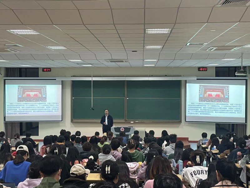 11月2日,咪咕体育直播 在立德楼X2阶开展“深入学习贯彻党的二十大精神”主题党课。中共常州市委二十大精神宣讲团成员、咪咕体育直播 关工委丁恒龙教授应邀授课,咪咕体育直播 全体党员及入党积极分子参加党课。
