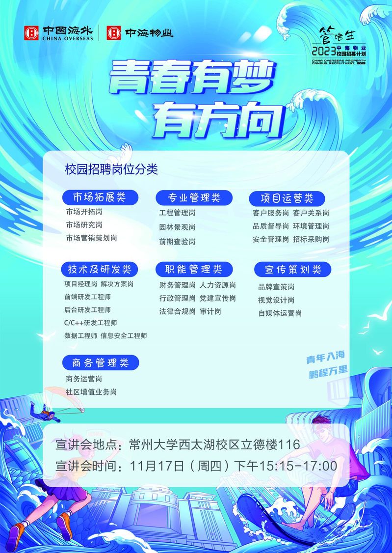 港股上市、实力央企:中海物业2023届常州大学站宣讲会