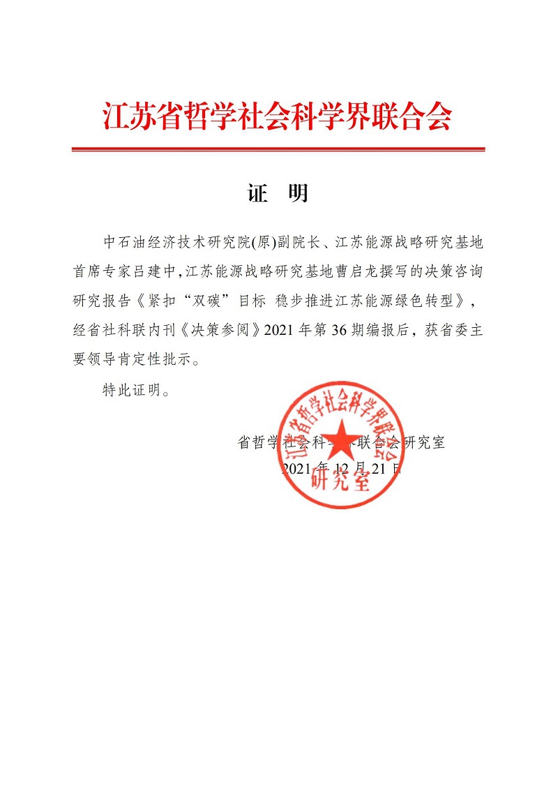 (决策咨询报告)紧扣“双碳”目标 稳步推进江苏能源绿色转型