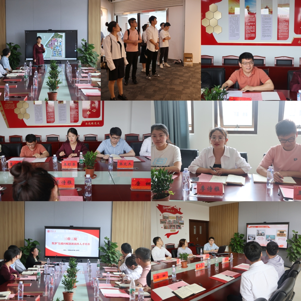 的基本情况、办学特色,并就创新创业教育、学生管理等方面与在座老师进行讨论。院学工办主任、本科生辅导员宋佳羚以“三带三促‘筑梦’直播间赋能新商科人才培养”为主题汇报了近年来咪咕体育直播