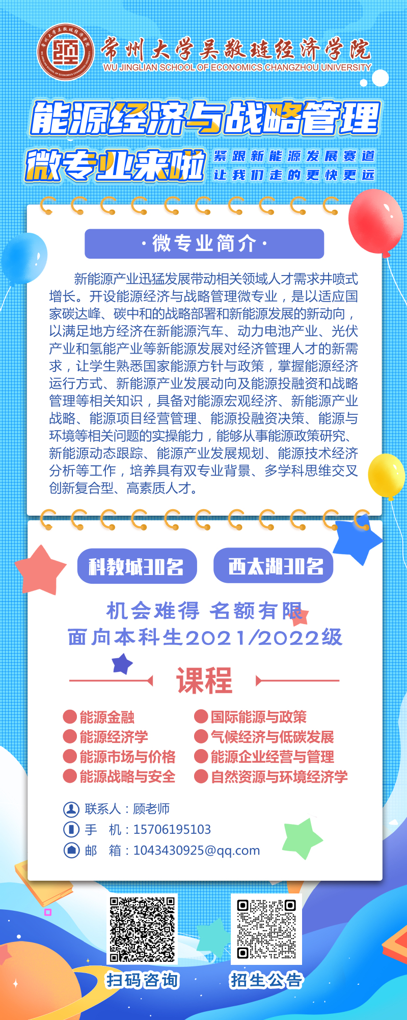关于西太湖校区开展《能源经济与战略管理》微专业招生宣讲会的通知