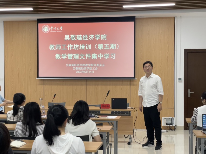 2023年6月14日上午,咪咕体育直播 教学指导委员会和咪咕体育直播 工会举办教师工作坊系列培训(第五期)在立言楼403会议室召开,培训主题为教学管理文件集中学习,全院教师参加培训。