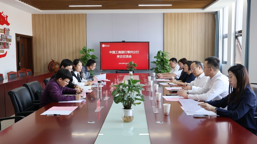 的双创工作进展和项目培育工作,并对各位领导的来访洽谈表示感谢。曹启龙和姚惠泽介绍了金融、金融工程专业及师资队伍建设情况,期待与中国工商银行常州分行开展合作,助力学生培养和学科建设。顾晗汇报了“工行杯”全国大学生金融科技创新大赛常州大学校赛的进展情况。