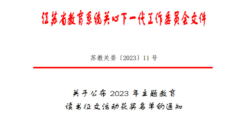 近日,省教育系统关工委公布2023年主题教育读书征文活动获奖名单,咪咕体育直播 学生获一等奖1项、二等奖2项、三等奖2项。