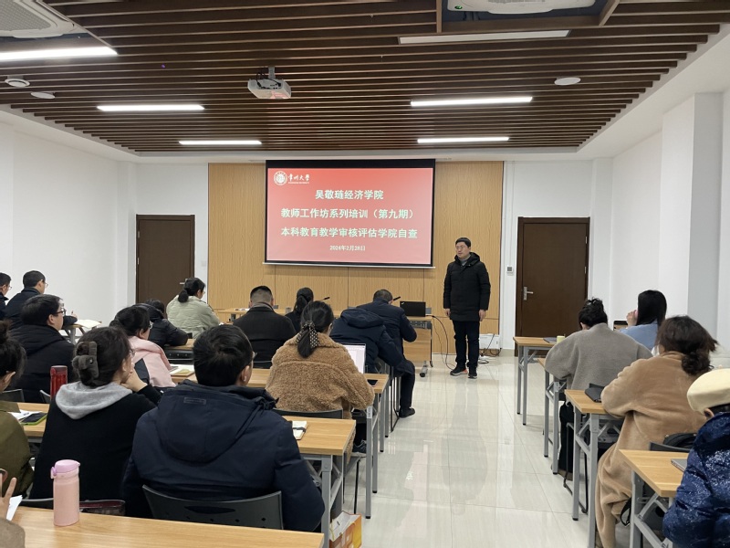 2024年2月28日下午,咪咕体育直播 教师工作坊系列培训(第九期)在立言楼403会议室召开。本次培训的主题聚焦于本科教育教学审核评估的自查,全院教师参加此次培训。