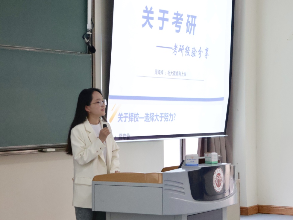 4月25日下午,2021级考研经验分享会在西太湖校区立德楼1阶举行。金融工程201班周婷婷(拟被南京审计大学录取)、金融工程202班张子健(拟被南京理工大学录取)应邀向2021级考研备考学生作经验分享。经验分享会由2021级辅导员宋佳羚主持。