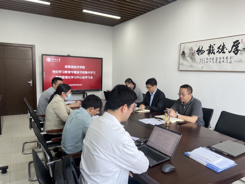 5月29日,吴敬琏经济咪咕体育直播 党委在西太湖校区立言楼419召开党纪学习教育专题读书班集中学习暨党委理论学习中心组学习会。党委书记姜鸿主持会议。