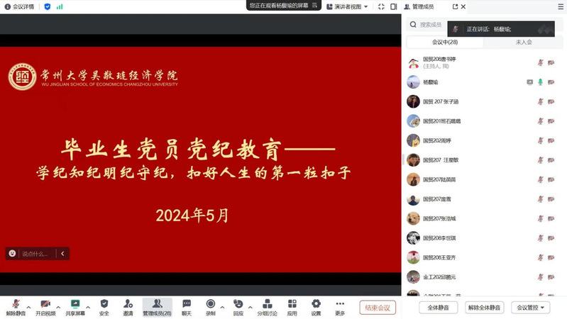 5月28日晚,咪咕体育直播 学生党支部开展毕业生党员线上党纪教育学习,会议由党支部书记杨馥瑜老师主持,支部全体毕业生党员参会。