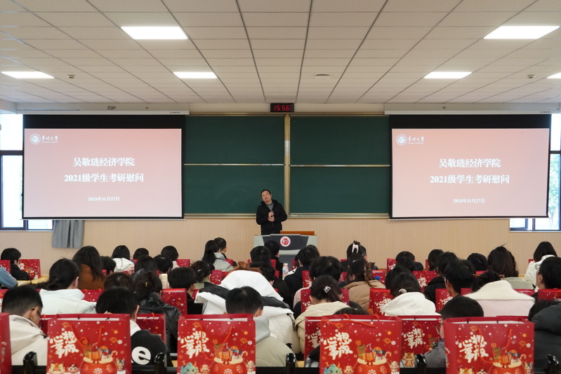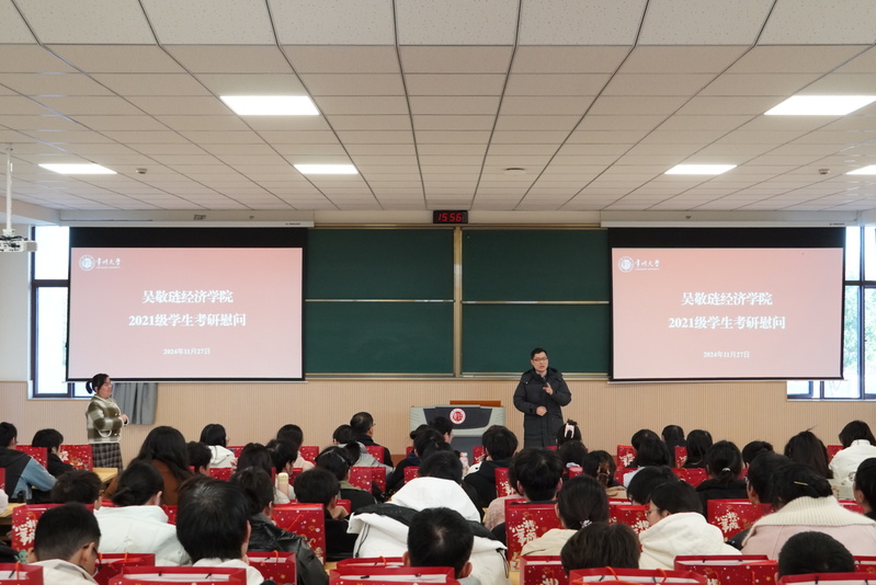 11月28日下午,咪咕体育直播 2021级学生考研慰问活动在常州大学西太湖校区立功楼6阶举办。咪咕体育直播 党委书记姜鸿、党委副书记许丹丹、副院长任保全、国贸系主任管志杰、金融系主任程安出席活动。本次慰问活动由2021级辅导员宋佳羚主持。