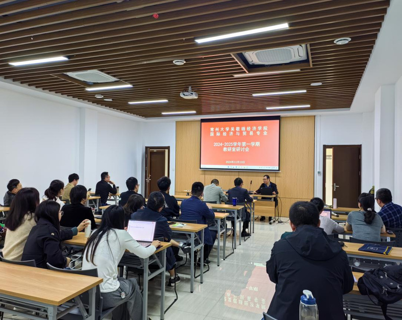 11月13日,咪咕体育直播 国际经济与贸易系在立言楼403会议室召开教研室研讨会,研讨会由系主任管志杰教授主持,咪咕体育直播 姜鸿书记、姜国刚院长和全体专业老师参加了教研会议。