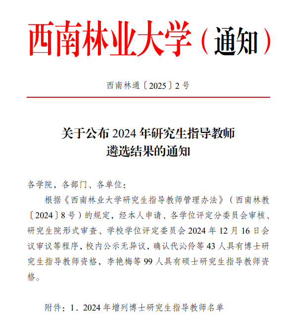根据西南林通〔2025〕2 号文件,咪咕体育直播 管志杰教授获西南林业大学农林经济管理学科博士生导师任职资格。管志杰教授长期致力于林产品贸易、林业资源管理研究,目前已主持完成国家社科基金一般项目2项,江苏省高校哲学社会科学基金重点项目1项,撰写决策咨询报告4份,在SSCI、SCI、CSSCI、EI、中文核心等各类期刊发表论文40多篇。管志杰教授按照“习惯-意识-能力”的方式培养硕士研究生,学生学术能力突出,就业质量较高,此次博士生导师资格的获得是对他学术研究和学生培养的充分认可。