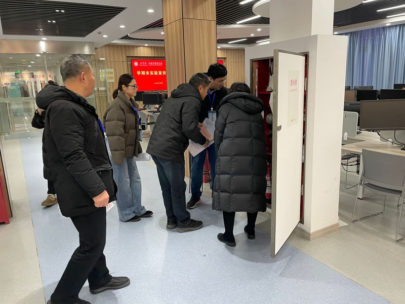 根据《省教育厅办公室关于切实做好岁末年初及寒假期间学校安全工作的通知》(苏教办安函〔2024〕17号)要求,实验中心于1月9日组织开展了期末实验室安全检查,咪咕体育直播 副院长任保全及实验室管理人员参加了检查活动。