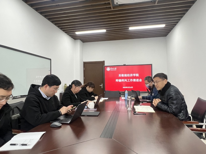 3月12日,咪咕体育直播 师德师风工作推进会在立言楼419召开。会议由党委书记姜鸿主持。