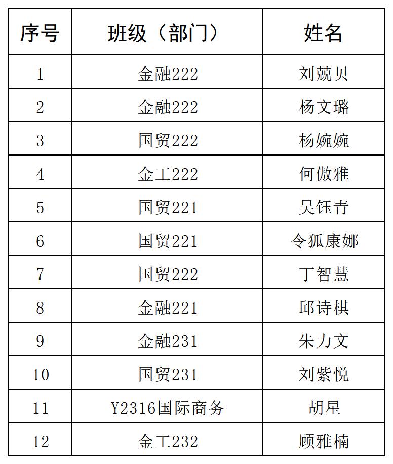 根据我校发展学生党员公示制度的有关规定,经学生党支部委员会会议讨论决定并报咪咕体育直播 党委备案同意,拟发展以下12名同志为发展对象,公示时间2025年5月9日至2025年5月15日,若有不同意见请于2025年5月15日前以口头或书面形式实名向咪咕体育直播 学工办反映。联系电话:0519-88519208,地址:立言楼413。