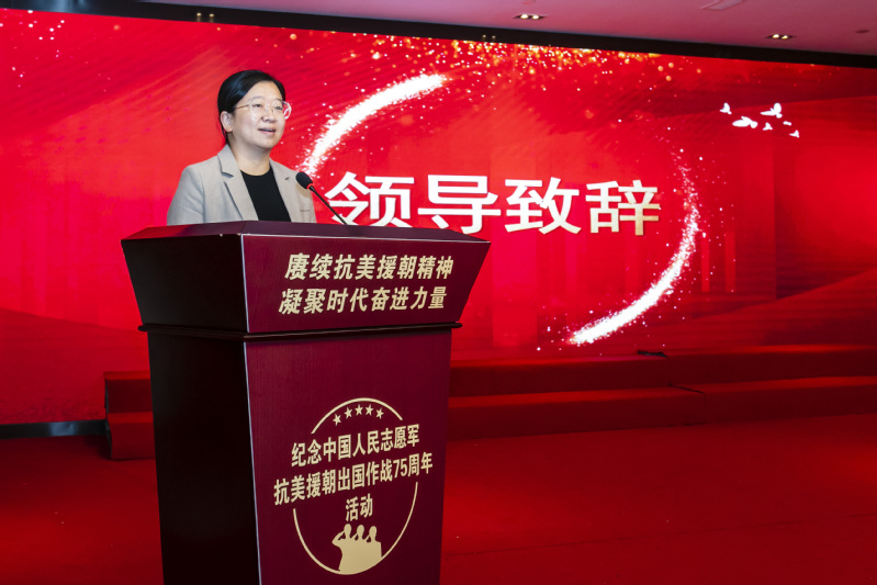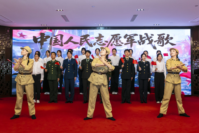 活动以歌伴舞《中国人民志愿军战歌》拉开序幕,激昂的旋律瞬间点燃全场。市退役军人事务局党组成员、副局长倪宁发表致辞,勉励青年一代从伟大精神中汲取智慧力量,为实现中华民族伟大复兴的中国梦而奋斗。随后,现场播放了抗美援朝老战士的采访视频《为了不可忘却的纪念》,老战士们真实动人的讲述令在场人员无不动容。