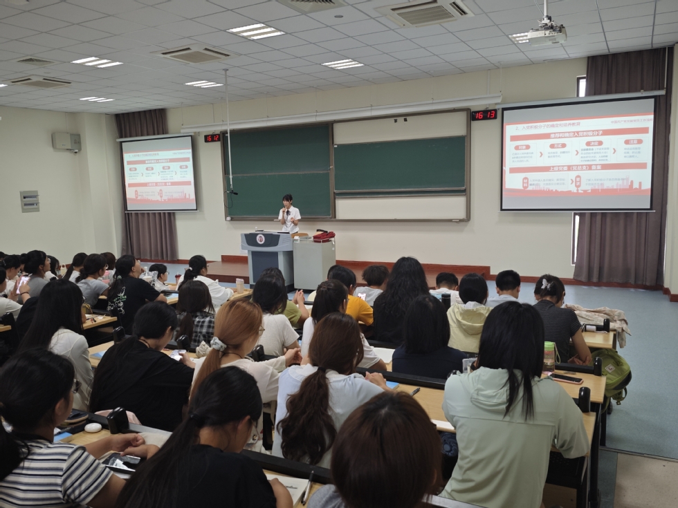 启梦·发展型教育擘画成长蓝图。聚效“生涯规划”,以前瞻性、多元性思维助推学生长远发展、助力学生行稳致远。广西壮族自治区教育厅教研院主任科员陈一鑫从“大学课余时间该如何度过”为主题切入,以“亲身经历+实用指南”的形式生动阐述了社会服务的价值,激励同学们以实干践行青春担当,书写服务社会的生动篇章。国联民生证券常州分公司武宜中路营业部总经理刘金斌从行业现状、行业变化、职业定位和大学规划等四个方面进行阐述,引导同学们精准定位、提早谋划,把自己塑造成为职场需要的“多边形战士”。中信证券常州分公司内训师、首席客户经理吴清迪以《大一新生必备财富思维》为题,揭示了财富积累和增值背后的深层逻辑,增进了学生对证券行业的了解。院25届毕业生、浙江大学硕士研究生汪鑫同学结合自身经历强调了学业规划的重要性,鼓励大家勇于尝试、力争上游,不断突破自身极限。院学生党支部副书记倪昊君、院团委副书记伏佳惠分别开展党团教育,理清了党员和团员的权利义务,勉励同学们更加严格要求自身。