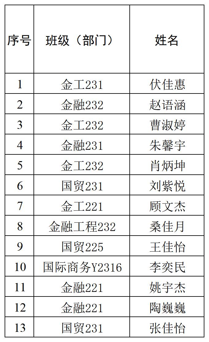 根据我校发展学生党员公示制度的有关规定,经学生党支部委员会会议讨论决定并报咪咕体育直播 党委备案同意,拟发展以下13名同志为发展对象,公示时间2025年11月24日至2025年11月30日,若有不同意见请于2025年11月30日前以口头或书面形式实名向咪咕体育直播 学工办反映。联系电话:0519-88519208,地址:立言楼413。