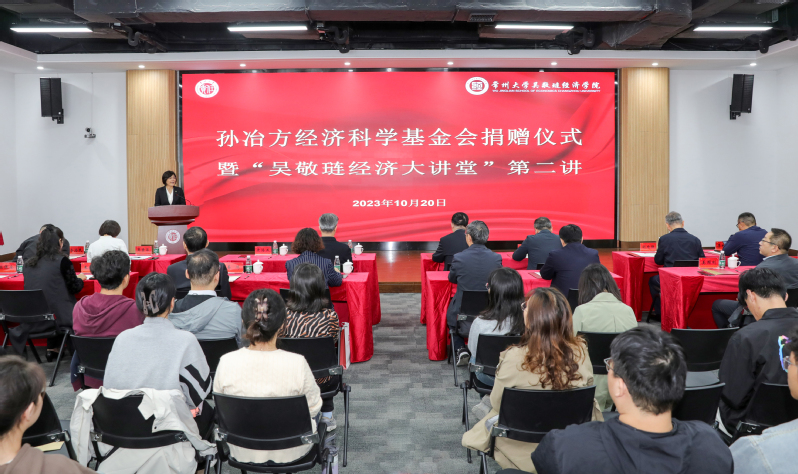 2023年10月20日,孙冶方经济科学基金会捐赠仪式暨“吴敬琏经济大讲堂”第二讲在常州大学西太湖校区立言楼458报告厅隆重举行。孙冶方经济科学基金会理事长李剑阁、孙冶方经济科学基金会理事长顾问葛俊、中信出版集团《比较》杂志副主编吴素萍、光洋股份董事长李树华、孙冶方基金会办公室副主任岳为民应邀出席。常州大学党委书记徐守坤、副书记黄海燕、咪咕体育直播 党政班子成员、教师和本科生研究生代表100余人参加活动。会议由校党委副书记黄海燕主持。