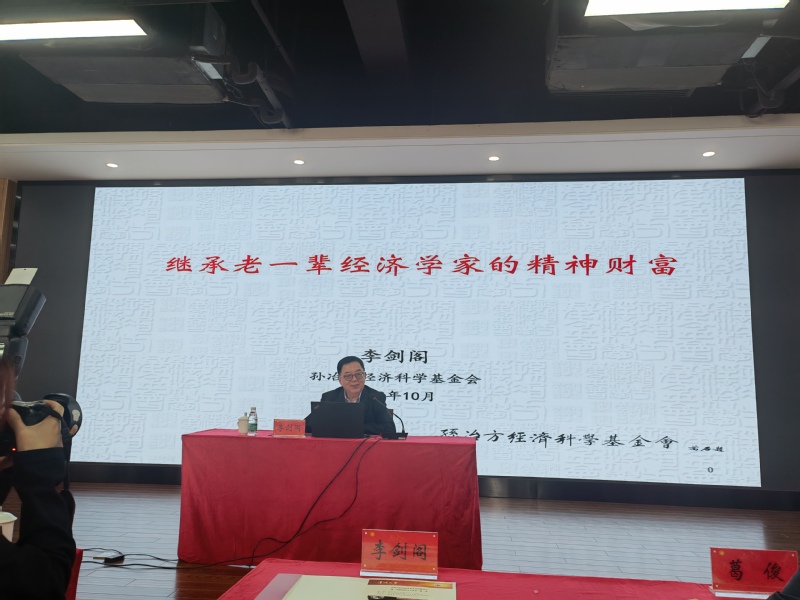 捐赠仪式之后,李剑阁理事长进行“吴敬琏经济大讲堂”第二讲,题为《继承老一辈经济学家的精神财富》。报告回顾了陈瀚笙、薛暮桥、吴敬琏等老一辈经济家的光辉历程;介绍了孙冶方经济科学基金会成立于1983年,目的是为了纪念我国卓越的经济学家孙冶方对社会主义经济科学的重大贡献;40多年来,基金会秉承孙冶方先生“追求真理、严谨治学”的精神,为繁荣我国经济科学事业做出了积极贡献。