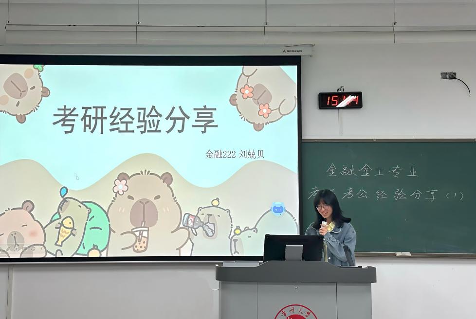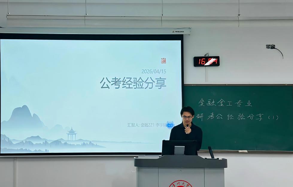为帮助2023级学子明晰备考方向、科学规划发展路径,4月15日下午,咪咕体育直播 于西太湖校区立德楼117教室开展了金融系考研考公经验分享会。本次分享会特邀姜旭老师以及三位“成功上岸”的2026届优秀学子作为主讲人,聚焦备考过程中的核心困惑与实战策略,为同学们带来了一场干货满满的经验盛宴。