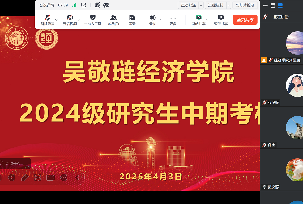 4月3日,咪咕体育直播 组织进行2024级应用经济学、国际商务专业研究生中期考核答辩,答辩以线上形式进行。南京邮电大学岳中刚教授、河海大学田泽教授等校外专家以及咪咕体育直播 硕士生导师共同参与考核。同时,咪咕体育直播 还邀请了学校督导线上列席指导。